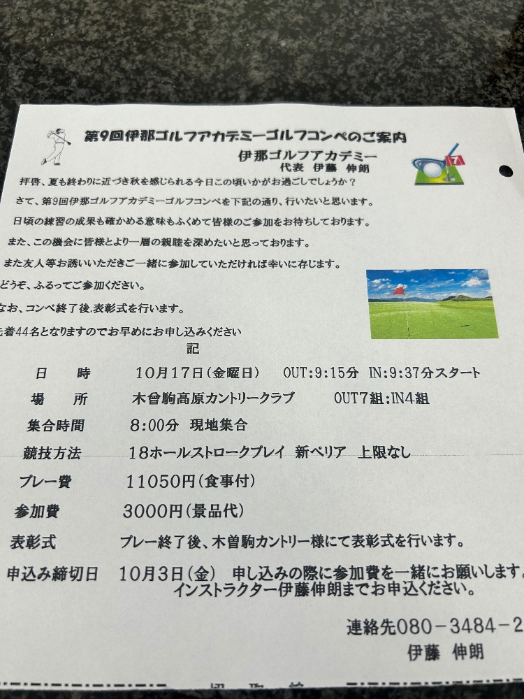 明後日は伊那ゴルフアカデミーの大イベント!年1のコンペがあります😊