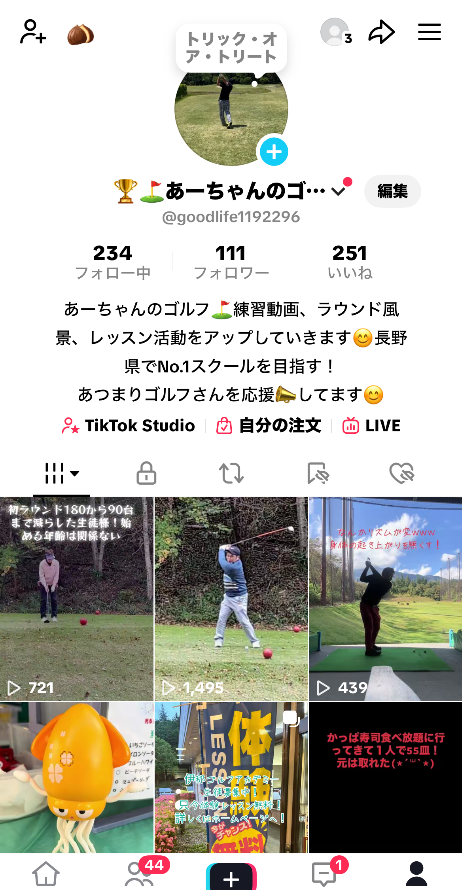 tictokで自分のスイング動画、レッスンの様子など上げて行きます!